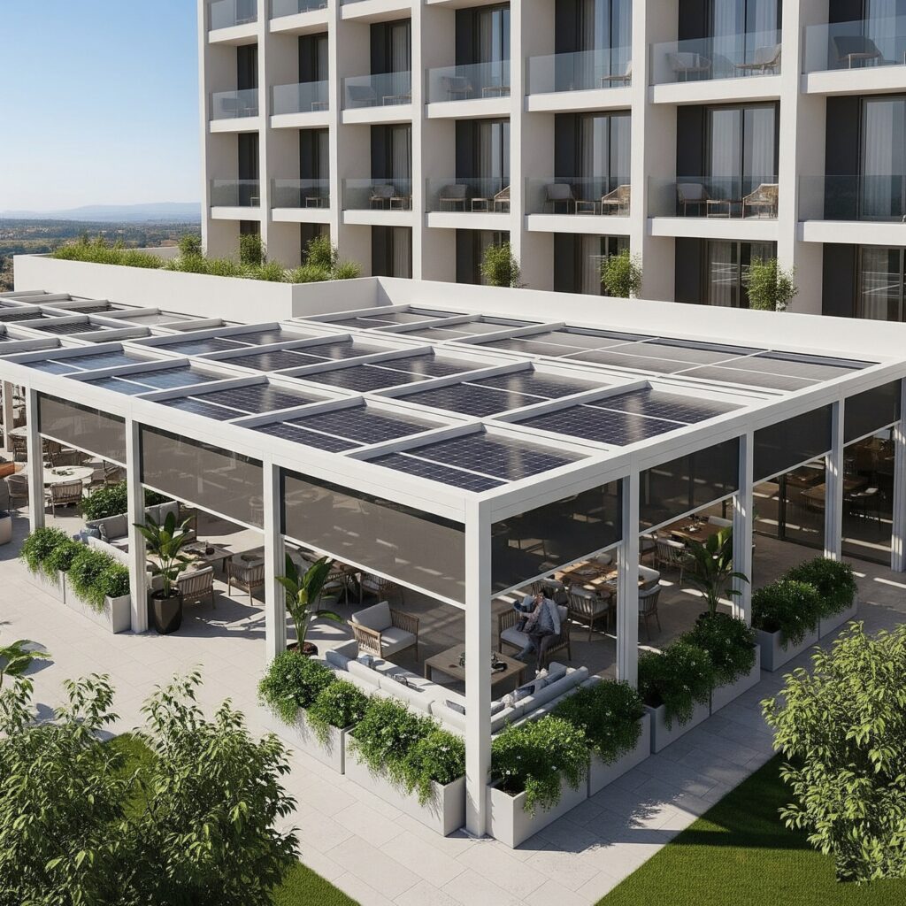 Combinamos estructura y tecnología para ofrecer sombra, confort y generación de energía, integrando cada diseño a la arquitectura y necesidades del lugar.